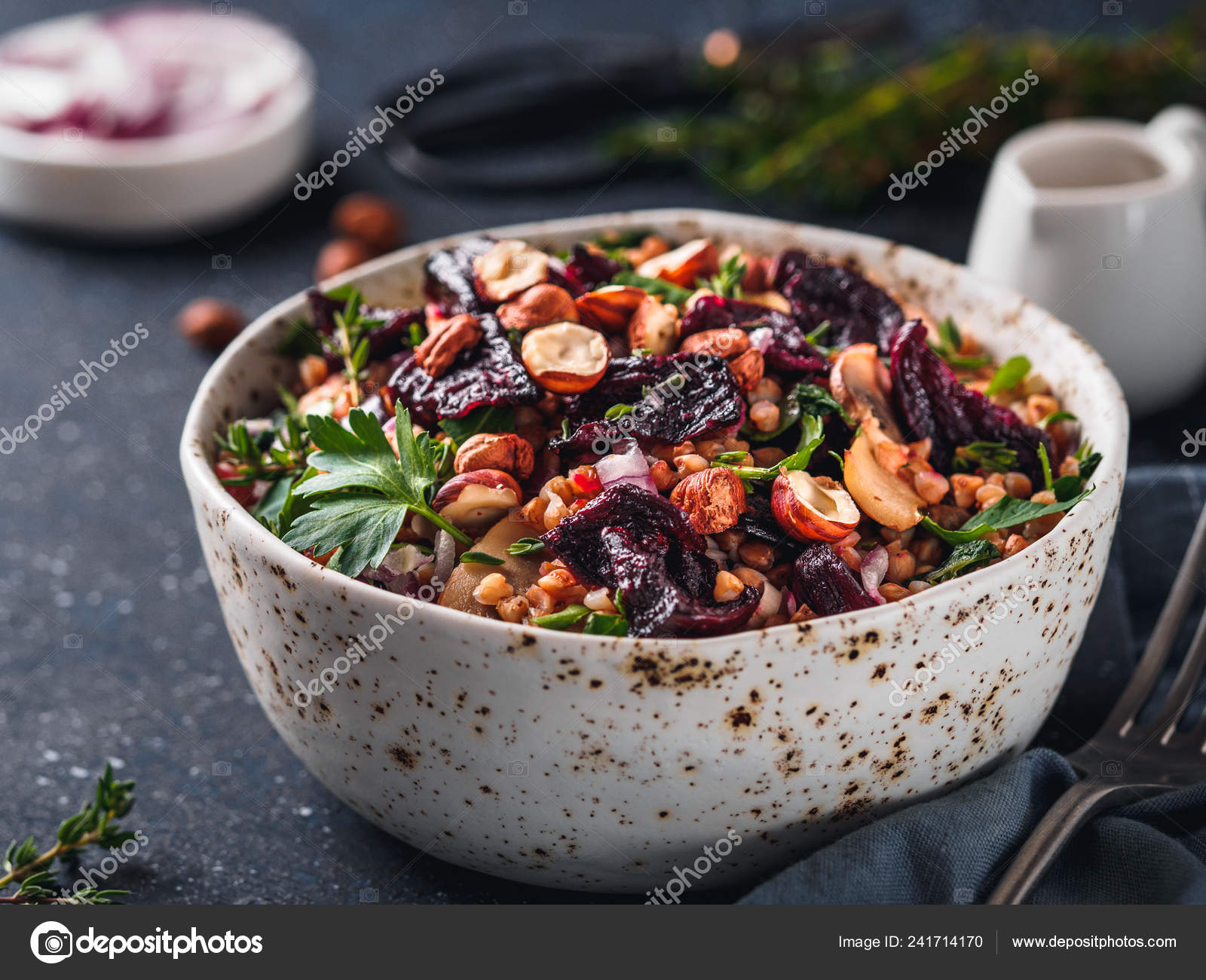 Salade Chaude Sarrasin Betterave Sur Fond Sombre Idee Regime Vegetarien Image Libre De Droit Par Fascinadora C 241714170